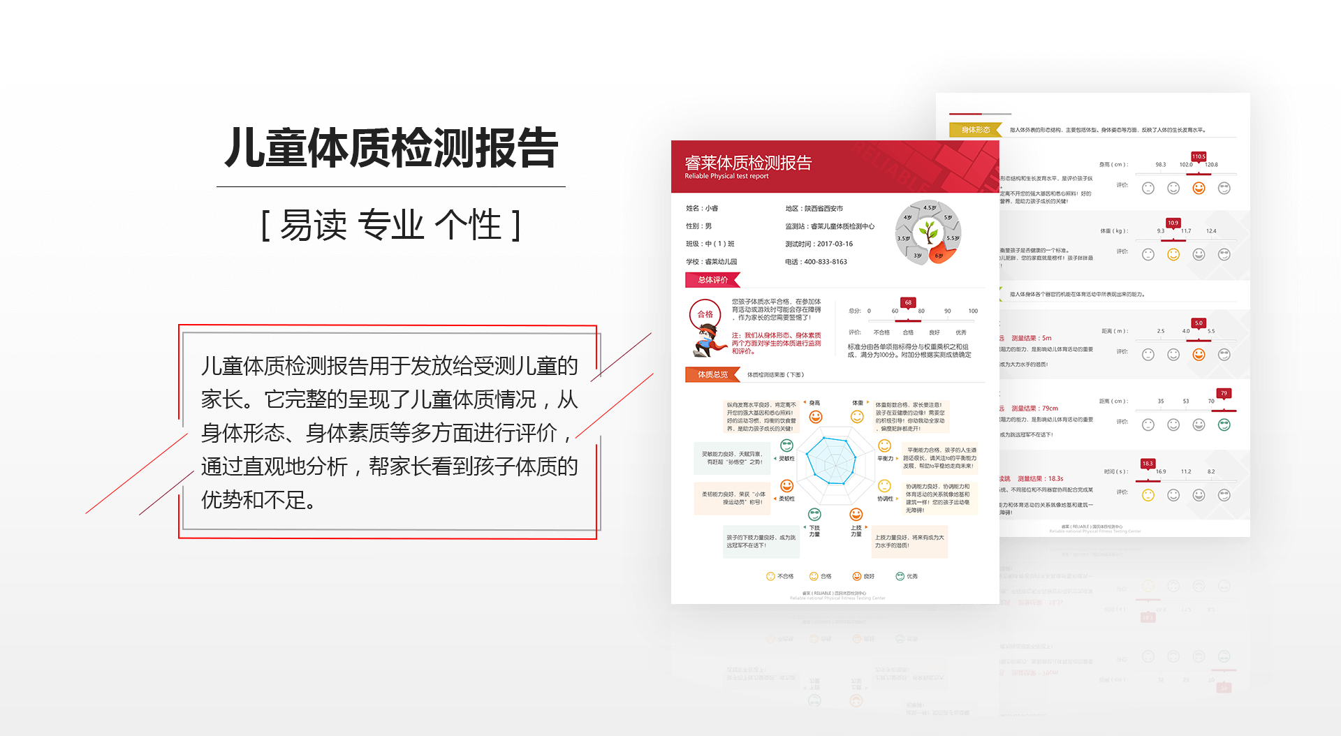 睿莱(RELIABLE)科技主要为中国幼儿园提供3-6岁幼儿的国民体质检测服务以及于此相关的信息化产品。